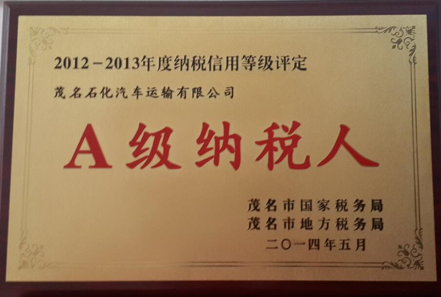 > 2012-2013年度納稅等級(jí)評(píng)定